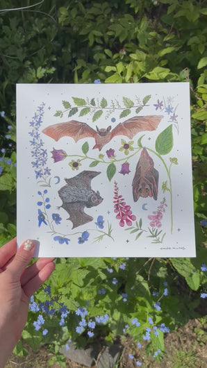 Art Print made from original watercolour painting by Emilie Nunez. Moon, stars, and details with a silver foil on a heavy cardstock.